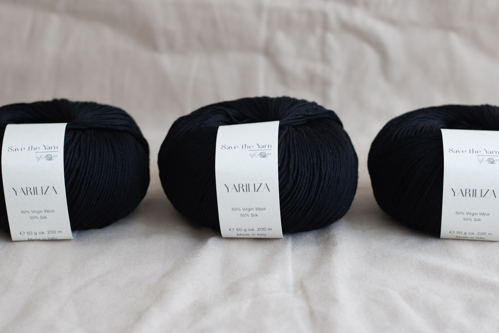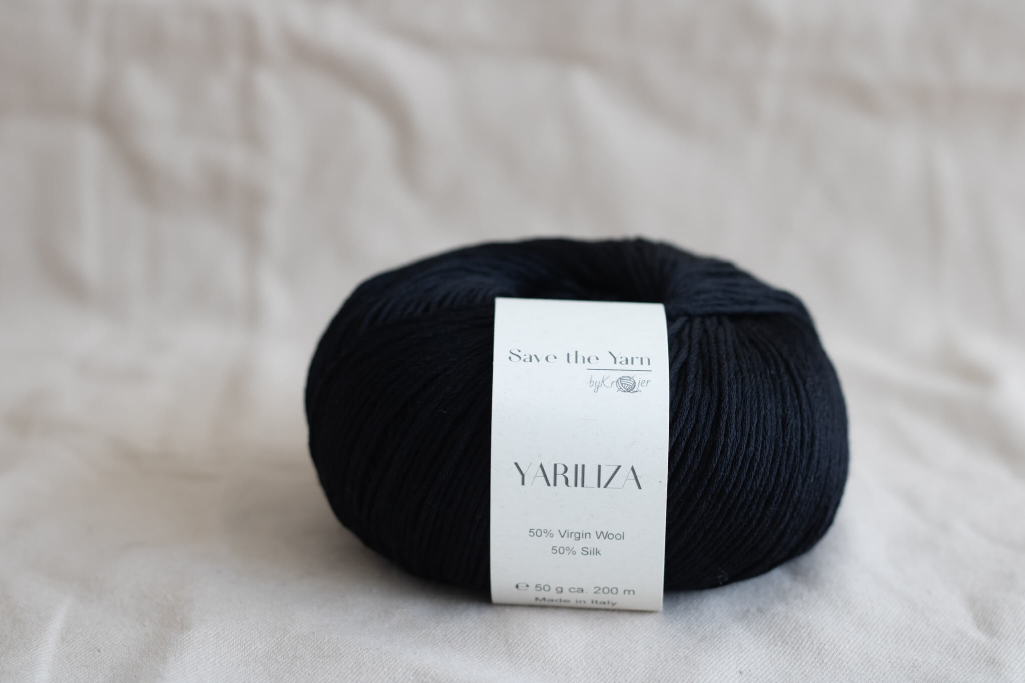 Yariliza – 50g – 50% silk & 50% extrafine merino in black
